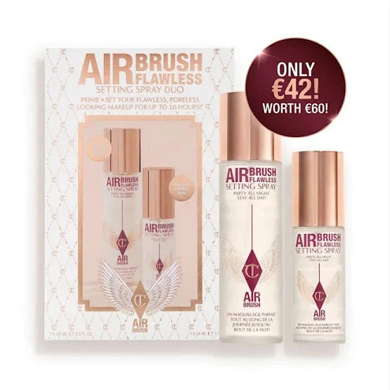 ONLY available on CharlotteTilbury.com and the App, this kit includes one full-sized setting spray to reach for as the final, fixing step in your makeup routine, and a travel-sized setting spray to touch up and revive the look of makeup on the go! Darlings, it takes two! Stand one on your vanity, and slip the other into your travel bag!